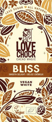 Maak kennis met ons zachte witte cacao boter product. Gemaakt met de beste natuurlijke ingrediënten en van nature laag in suiker. Lovechock Bliss is niet alleen 100% vegan en biologisch, maar wordt ook verpakt in thuis composteerbare folie. Geniet zorgeloos van de magie van cacao!